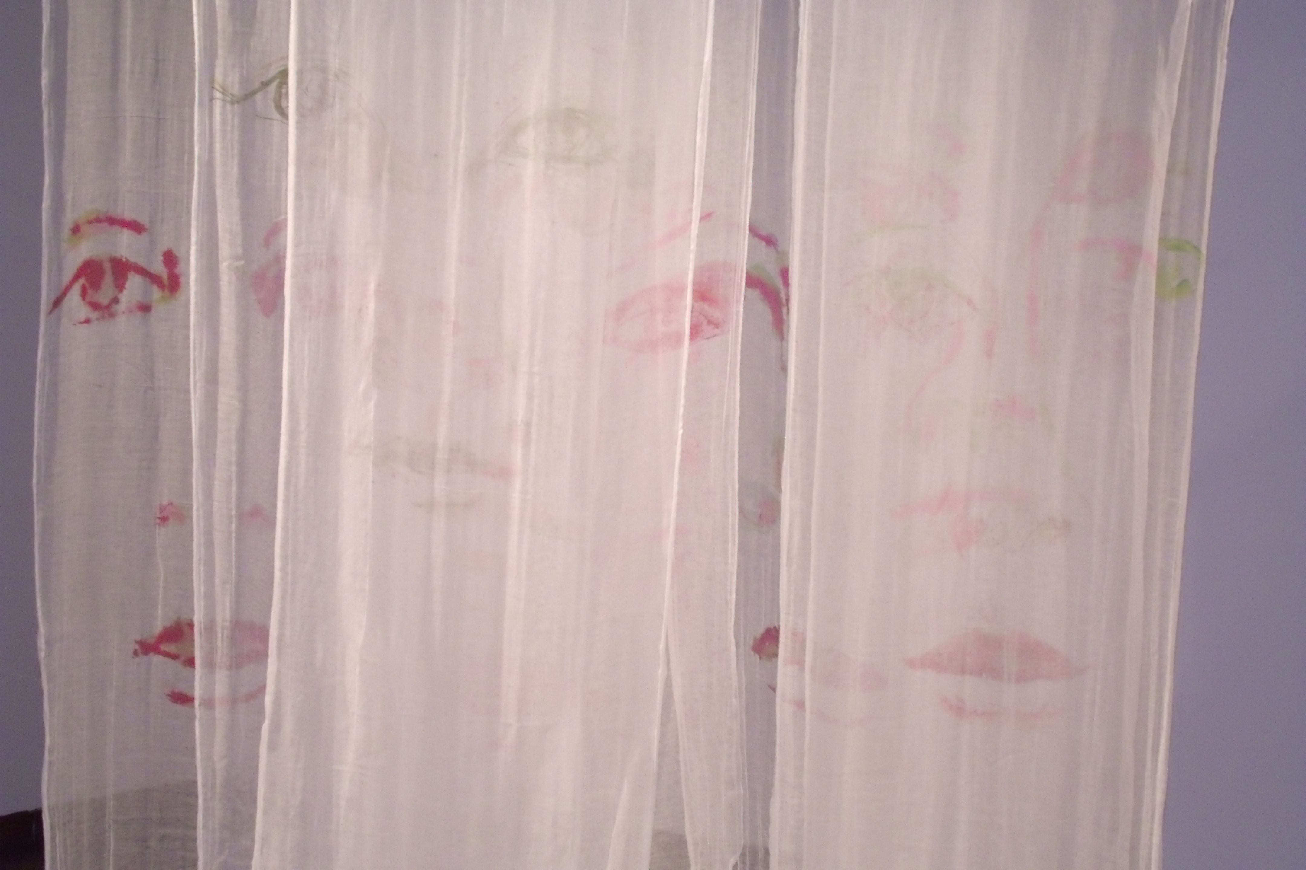 The works vary is texture and medium but share a reference to the bridal veil and reference the complex face of the woman warrior hidden beneath the veil.